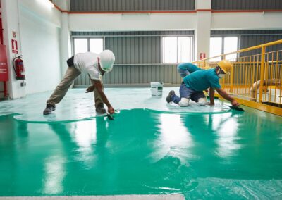 Part A and Part B must be mixed together first for a minimum of 2 minutes. Then, mix part C (powder) with these two parts for at least 5 minutes. Once the mixing is done, the compound can be applied with a trowel and/or notched squeegee to a thickness of 3-6 mm in order to reach a smooth surface. Alternatively, aluminium oxide or bauxite could be broadcast while applying to be able to reach 6-9 mm of thickness and a R9 to R13 non-slip floor rating.